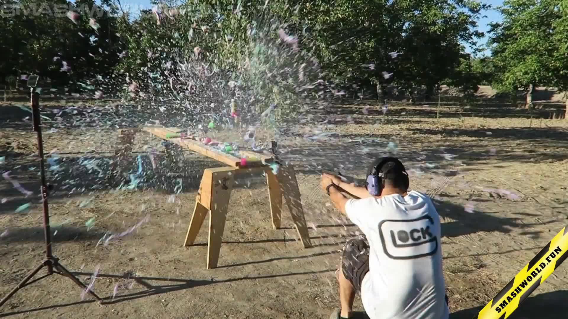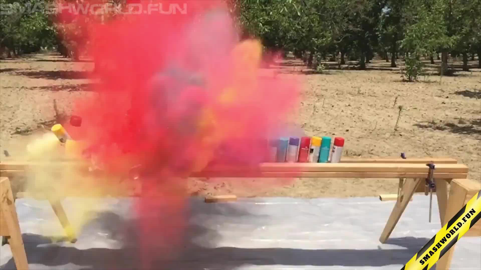 A small caliber pistol shot pierces an aerosol can, releasing a powerful jet of pressurized spray that sends the can spinning wildly. The combination of the sudden burst of force and the swirling motion creates a dramatic and visually striking scene. This captivating moment highlights the raw energy stored inside everyday objects under pressure.
