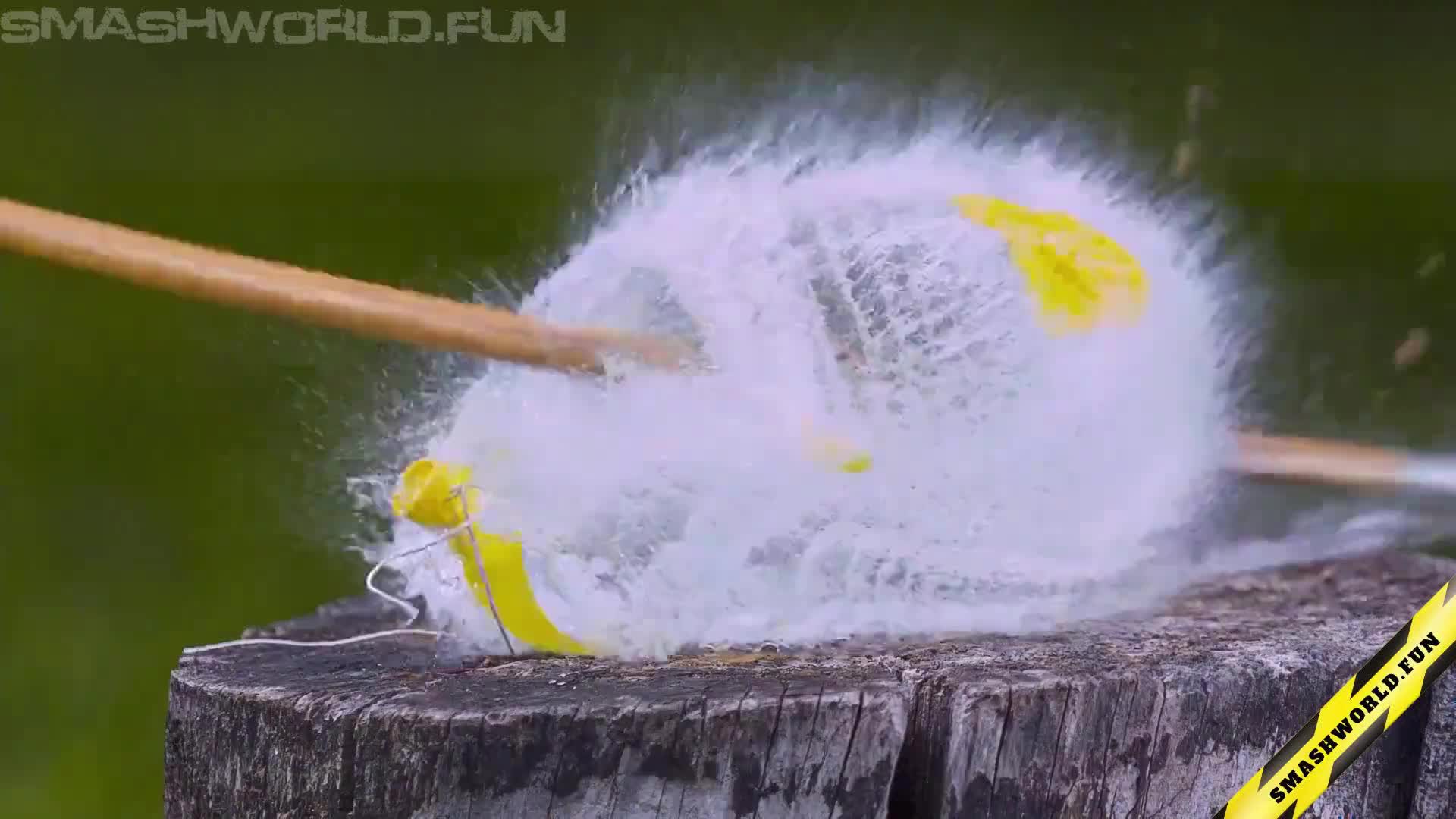 A thrilling high-speed capture of an arrow piercing a plastic soda bottle, causing a spectacular eruption of fizzy liquid. The footage highlights the precise moment of impact and the explosive reaction in mesmerizing detail.