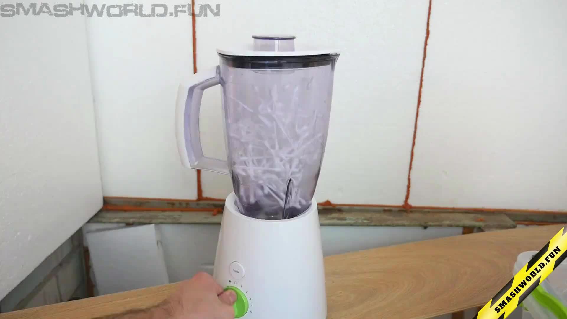 A fascinating demonstration of a bicycle tail light being placed into a blender. As the blades whirl, the tail light is shattered into countless fragments, leaving a striking display of broken pieces captured in vivid detail.
