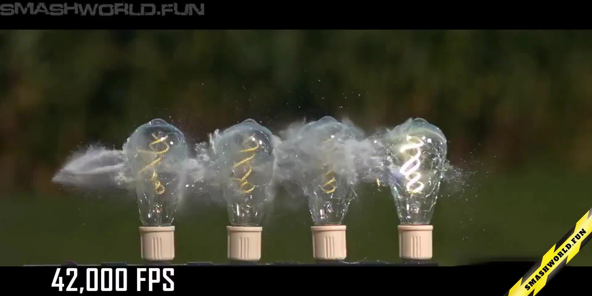 A glowing light bulb is struck by a projectile, captured in breathtaking high-speed detail. The instant of impact transforms brightness into a dazzling shower of sparks and glass fragments, revealing the fragile beauty of light meeting force in a single brilliant moment.