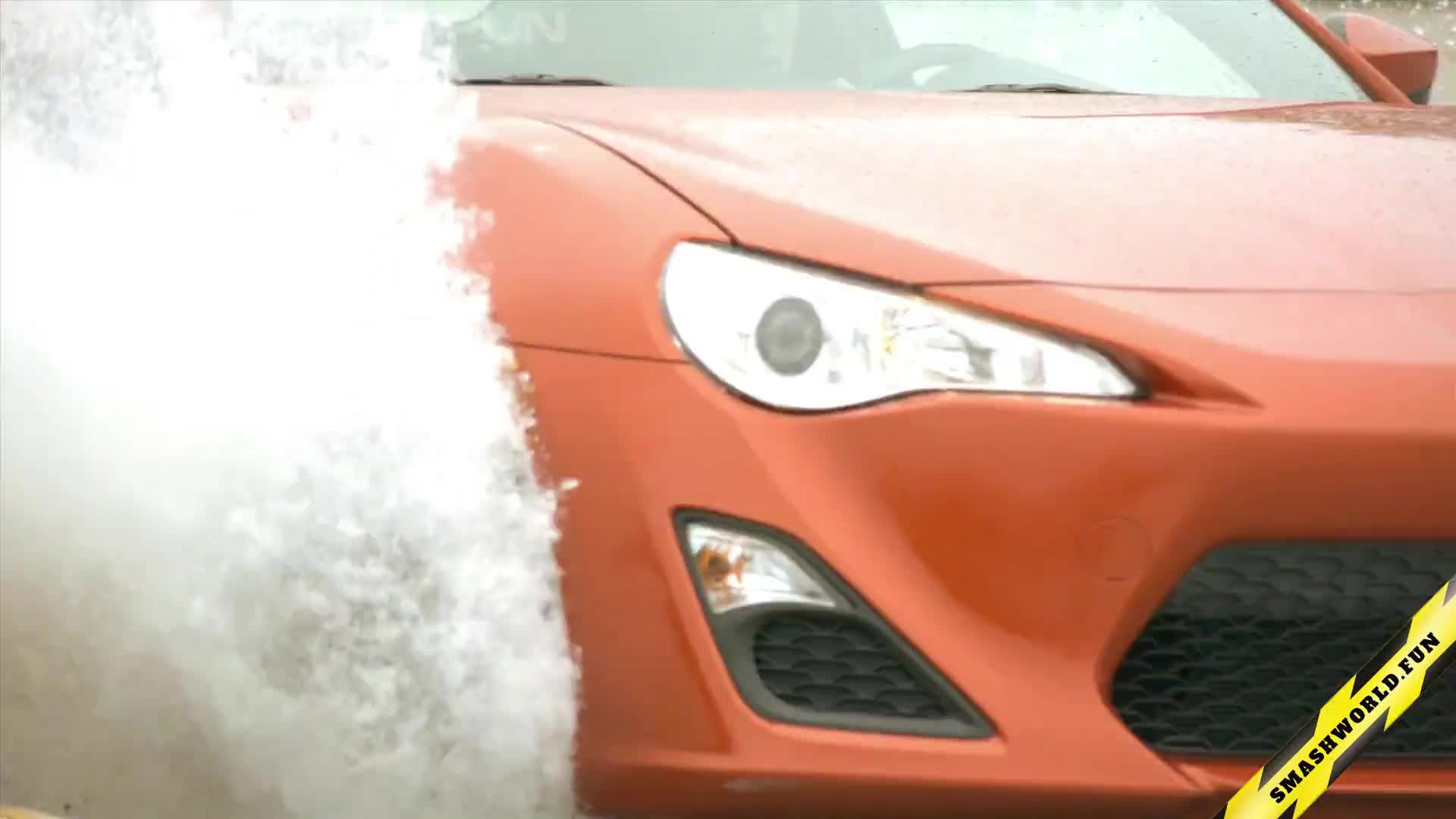 A dramatic urban scene unfolds as several parked cars along the roadside suddenly sink into the ground, vanishing into the water below in a surreal and captivating display of collapsing pavement.