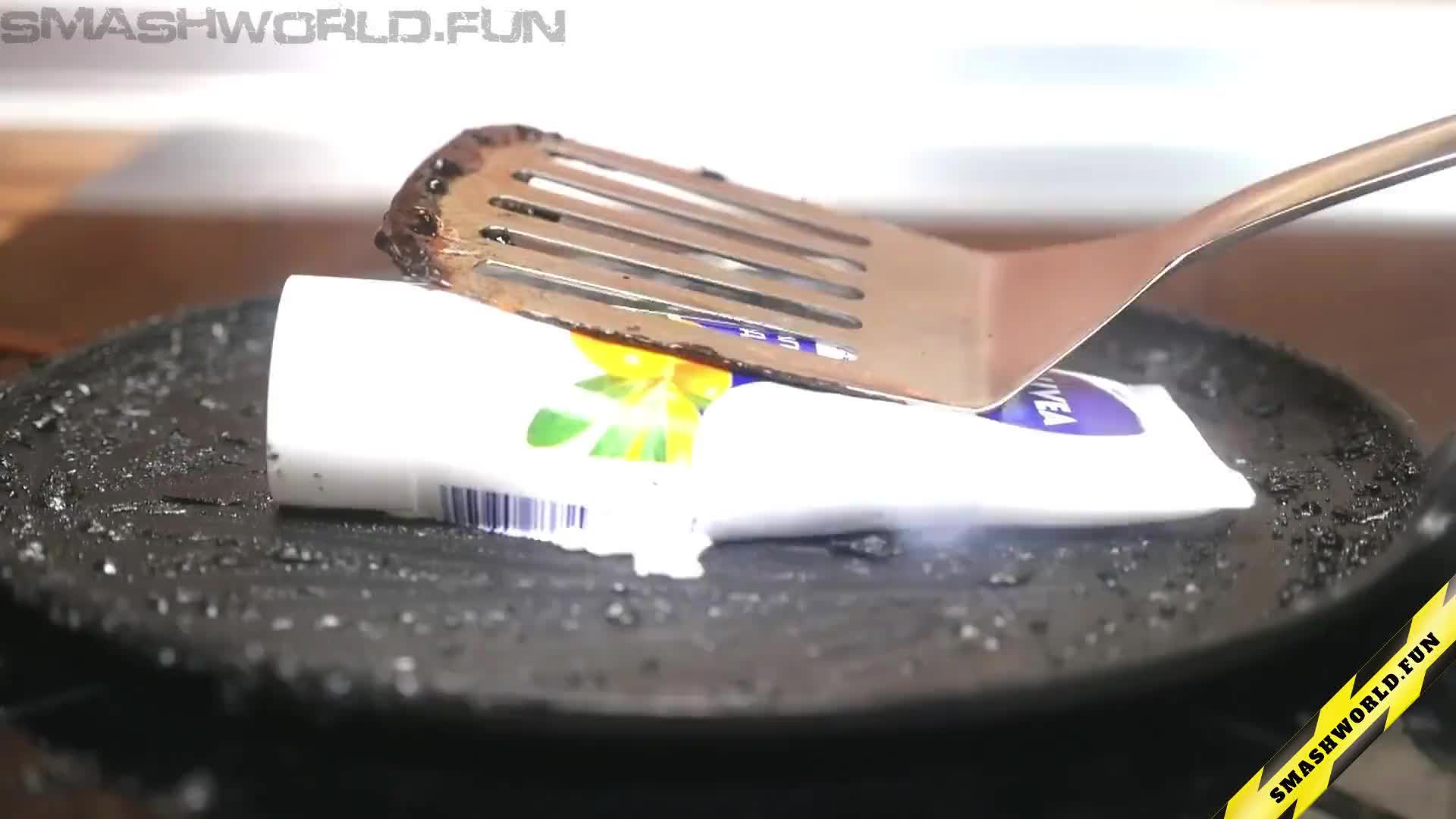 A captivating demonstration showing foam plastic placed on a scorching hot pan, gradually melting into a distorted, flowing mass. The footage vividly captures the transformation and the striking contrast between the solid foam plastic and the liquid remnants.
