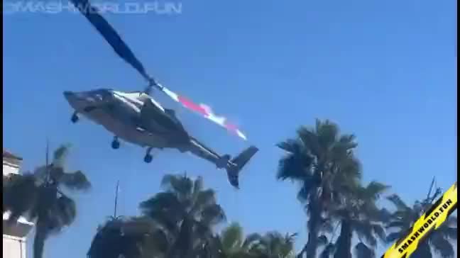 A dramatic capture of a helicopter attempting to land but losing control, showing the tense moments before it impacts the ground. The video vividly displays the struggle of controlled flight and the sudden chaos of the crash.