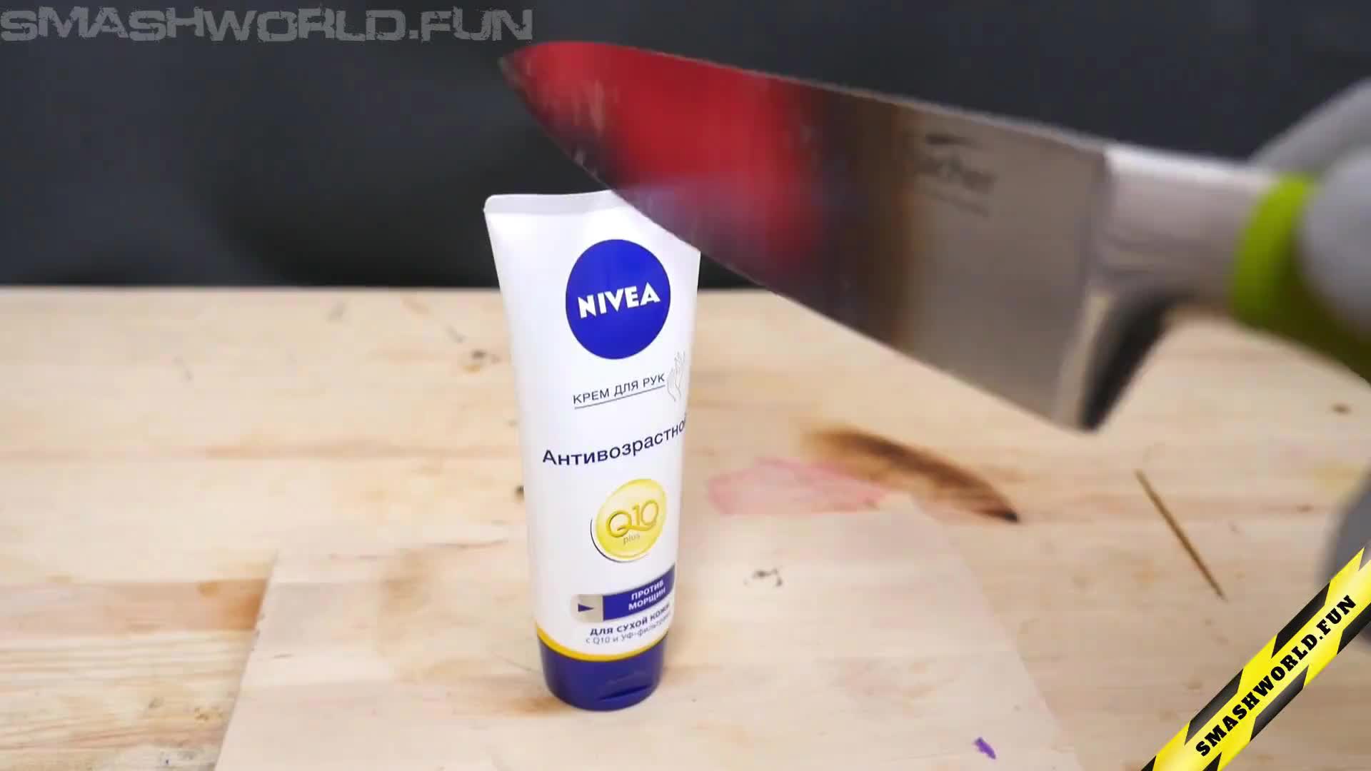 An intense visual of a chip bag being sliced with a glowing hot knife, causing the packaging and chips to melt and char while smoke rises. The footage captures the surreal transformation of ordinary snacks under extreme heat.