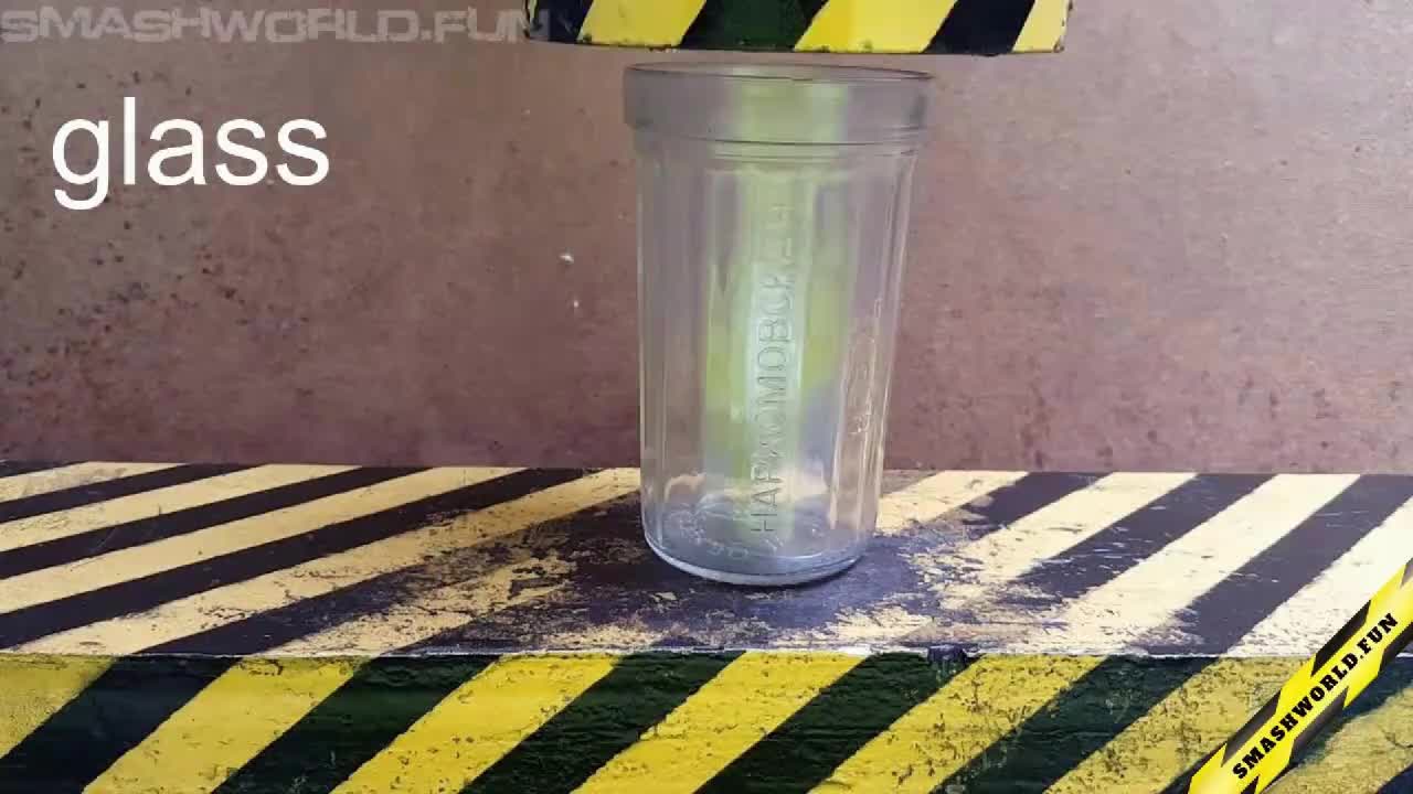A mesmerizing capture of a hydraulic press compressing a delicate glass ball. The footage reveals the glass shattering into countless fragments, creating a striking visual spectacle of destruction and precision.