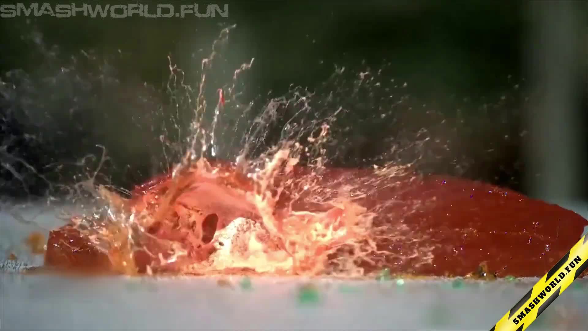 A paintball round strikes a human skin, creating vivid internal shock waves captured in crisp slow motion detail. The footage highlights the fluid-like ripples spreading through the human skin as the sphere bursts on impact, releasing its colored filling in a bright, dramatic bloom. Each frame reveals the dynamic deformation of the skin, showcasing intricate motion patterns and the elegant interplay between force, texture, and color.