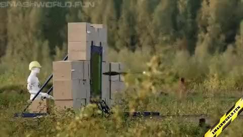 Rocket hits trailer slow motion