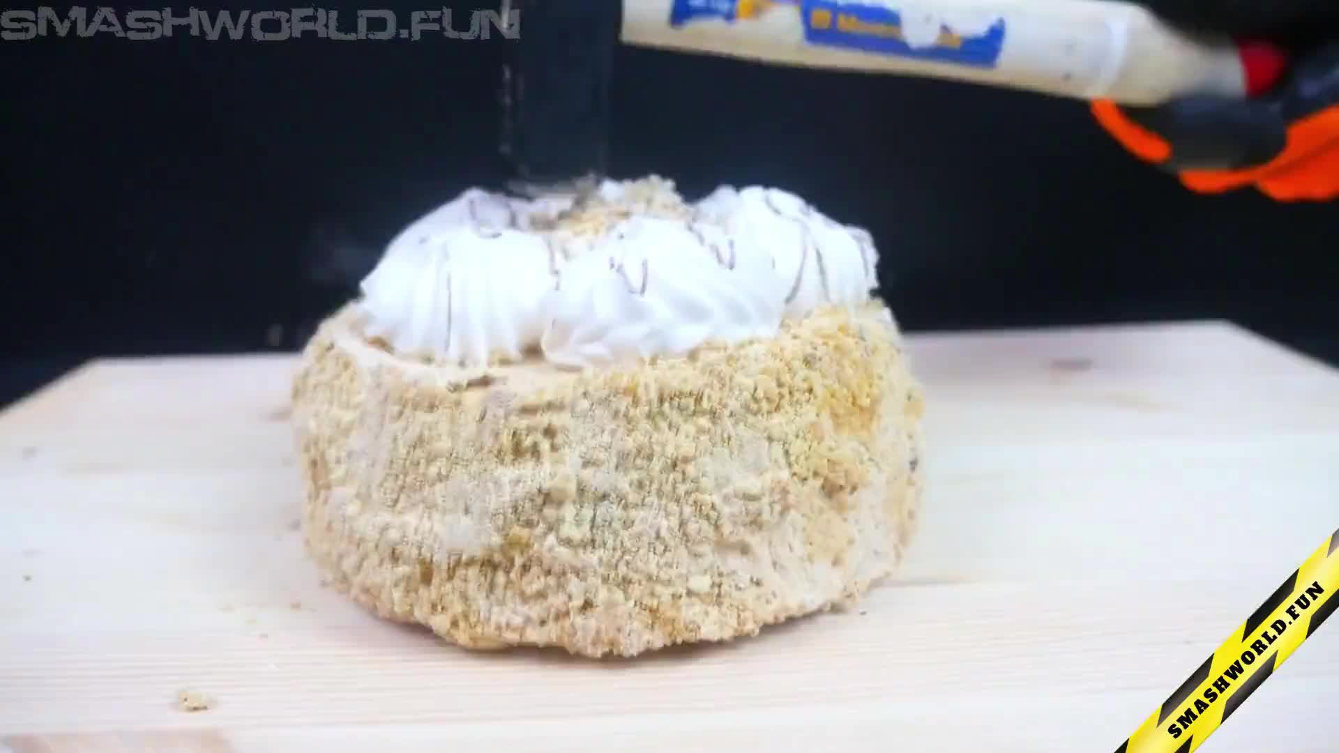 A Rubik's Cube, frozen in liquid nitrogen, is struck with a hammer and shatters into countless pieces, creating a spectacular and visually striking display of frozen fragility and explosive fragmentation.