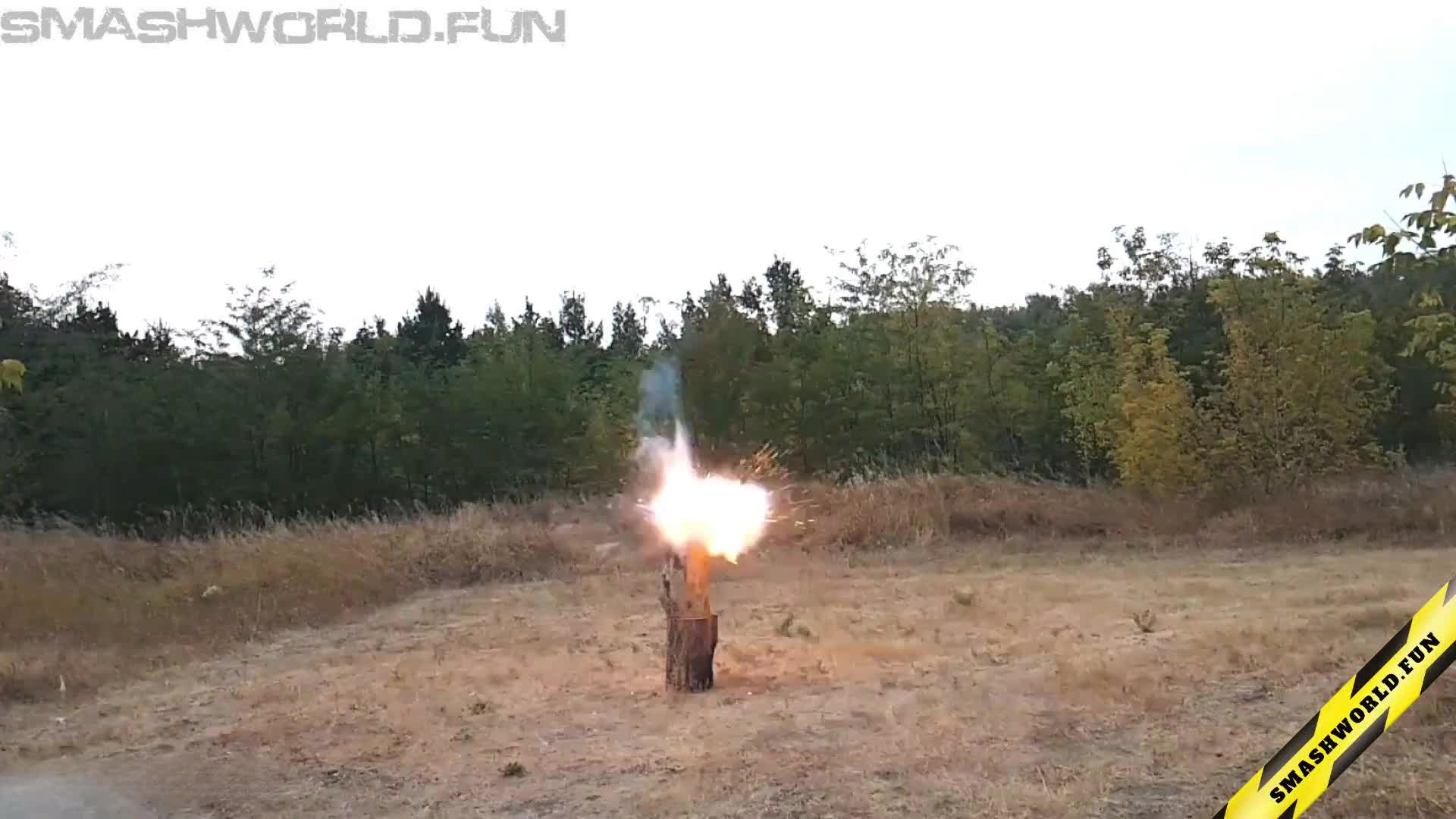 A shaving foam can is heated with a gas torch until it suddenly bursts, spraying foam in all directions. The dramatic scene captures the explosive expansion and chaotic motion of the foam, creating a visually intense and mesmerizing spectacle of force and chaos.