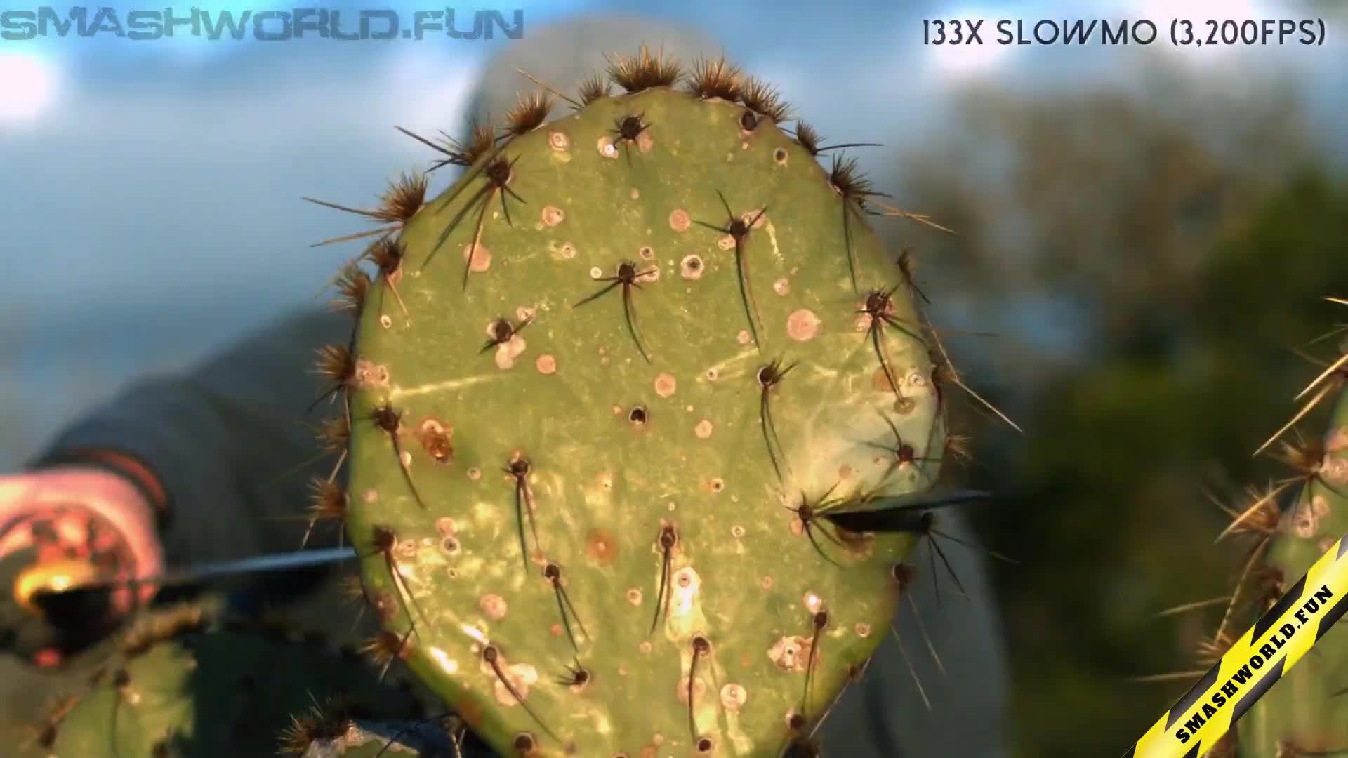 A delicate soap bubble descends gently and bursts upon touching the sharp needles of a cactus. The scene captures the fragile beauty and sudden rupture of the bubble, creating a visually captivating moment of contrast between softness and spiky textures.