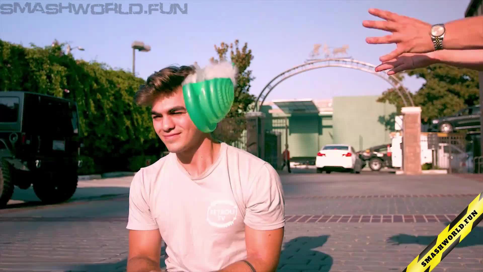 Two water-filled balloons hit a person’s head simultaneously and burst, releasing a cascade of liquid captured in stunning high-speed detail. The splash wraps around the face in smooth waves, revealing the fleeting beauty of motion, tension, and transformation in a single explosive moment.